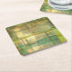 Gilded Turquoise and Green Abstract Painting Square Paper Coaster