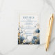 Announce the particulars of your special day with the dramatic beauty of wildflowers blooming under a midnight sky. This exquisite details card is a masterpiece of modern botanical art, featuring a stunning, moody watercolor arrangement that grows from the bottom of the card in a sophisticated and timeless colour palette. Magnificent, painterly poppies or anemones in a deep, rich navy blue are complemented by elegant golden foliage and delicate creamy white blossoms. An expressive splatter of blue and gold paint adds a chic, artistic touch, like a dusting of celestial confetti. This beautiful floral border provides a luxurious canvas for your essential wedding information, such as accommodations or your website. Its versatile and artistic design also makes it a stunning choice not just for wedding details, but also for a rehearsal dinner invitation, an RSVP card, or a menu for a formal gala. Set a tone of modern artistry and moody, romantic elegance for your entire celebration.