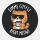 Gimme Coffee Right Meow Funny Cat Pun Dark BG Classic Round Sticker