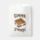 Simply personalise with your information! Favour bag features an original marker illustration of delicious toasted marshmallow and chocolate campfire s'mores, with GIMME S'MORE in a fun font.