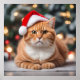 Cute Ginger British shorthair cat wearing a Santa hat.