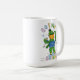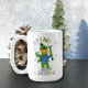 Cute winter mug featuring a whimsical ginger cat going skiing . Perfect for hot cocoa , coffee or tea .