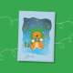 Cute blue rectangular winter pinback button for kids featuring a ginger cat standing in the snow . Personalize with a name or with your onw text ,