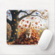 Ginger Cat Leaping Out of Autumn Leaf Pile Mouse Pad
