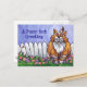 Ginger Cat personal postcard featuring our cute orange and white cat in front of a white picket fence with a blue textured sky painted by our talented children’s book illustrator, Traci Van Wagoner, is perfect for any cat, kitty, and kitten lover. Our fun artwork shows both sides of the cute kitty from the front and the back, coming and going, heads and tails in colourful, fun art that will bring a smile to the face of any animal or cat lover. Collect the entire set of fun Ginger Cat stationery items. Also send out this cute postcard with a matching cat postage stamp.