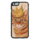 Ginger Cat with Crown Portrait Carved Wood iPhone Case