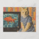 Ginger Cat With Goldfish on TV Retro Collage Postcard