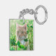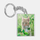 Ginger Cat with Green Eyes in Grass Key Ring