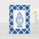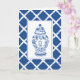 This single initial monogrammed ginger jar note card design features a very chic blue and white bamboo patterned background with a coordinating blue and white chinoiserie ginger jar vase. The inside is left blank for you to write your personal message, or purchase 8-10 cards and package them up with a beautiful bow for a one of a kind hostess gift.