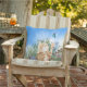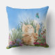 Ginger kitten playing with a butterfly outdoor cushion