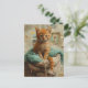Ginger Kitten Yarn Collage Mixed Media Postcard
