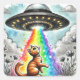 A cute ginger kitty welcomes a UFO beaming down watercolor rainbow beams in a wildflower meadow fantasy scifi art  AI generated art