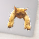 Pictured hanging down with his long paws is a lazy ginger cat