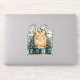 A radiant ginger tabby cat rests regally among an array of vibrant yellow and green foliage, framed by delicate flowers and teal pots. The harmonious blend of soft watercolor hues and intricate botanical details highlights the serene yet confident demeanour of the feline. This illustration perfectly balances warmth, nature, and feline elegance, making it an ideal addition for plant and cat enthusiasts.