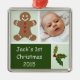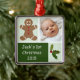 Baby's first Christmas photo ornament with gingerbread and holly design. Customise with your own photograph and text. Click 'customise it!' if you need to reposition or resize your photo after uploading.