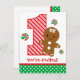 Cute Christmas 1st birthday design with a candy cane striped number 1, adorable little gingerbread boy and red and green striped peppermint candies. PinkInkArt original!.