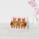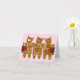 Three little gingerbread cat cookies dressed up with frosting for the holidays on a sugar pink background, hand painted by Katherine Elliott. The inside reads “Warmest Wishes”, with plenty of space for your hand-written message.