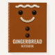 A cute and festive Gingerbread Christmas Notebook featuring a smiling gingerbread cookie on a warm holiday background.