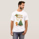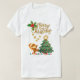 Celebrate the holidays with this cheerful Christmas design! Featuring a smiling gingerbread character in a Santa outfit beside a decorated Christmas tree with glowing lights and ornaments. Above, golden “Merry Christmas” lettering is surrounded by festive holly, stars, and gift icons. A colorful mix of stylized trees adds extra charm to the scene — perfect for spreading seasonal joy