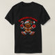 Cheerful gingerbread figure in a Santa hat, candy cane in hand, bold red outlines and festive boots. Vibrant holiday illustration with a playful twist for apparel and gifts.