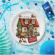 A Colorful Gingerbread Cookie House Paper Party Plate For Christmas