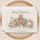 This Gingerbread Cookies Christmas Holiday Card is decorated with watercolor cookies, festive greenery, and red berries on a cream background. It says Merry Christmas in stylish script typography and has a gingerbread cookie pattern on the back.