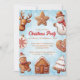 Celebrate in style with this cute gingerbread cookies party invitation. Perfect for decorating your Christmas or holiday party. Cheerful watercolor illustrations featuring gingerbread cookie figures (a Christmas tree, man with hat, snowman, star, heart, reindeer, house, and Christmas ball) on a blue and white background with snowflakes. Playful and charming, it's the perfect way to set the tone for a fun celebration and wish your loved ones a Merry Christmas.