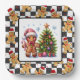 A Gingerbread Man Square Paper Plate In A Black And White Buffalo Plaid Design With Cute Gingerbread Men