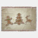 Elegant and delicious Christmas illustration: Decorated gingerbread Christmas tree, gingerbread man and gingerbread deer with golden stars on a brown bokeh background.