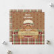 Cute gingerbread cookie woman as cook with Merry Christmas text above. Rolling Pin banner has text ready for you to customize with your names. Background has sweet little red hearts pattern with matching lower plaid in burgundy red, white and green for a delightful Country look. Matching card back has circle frame and photo template for you to replace with you favorite uploaded photo.