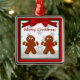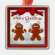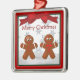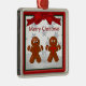 A graphic design of a gingerbread family of two/couple on a Christmas ornament.