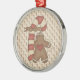 Gingerbread Holding Giant Candy Cane Metal Ornament