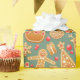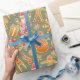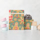 Gingerbread cookies in various holiday shapes adorn this festive wrapping paper.