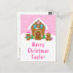 Gingerbread House Bright Pink Merry Christmas Holiday Postcard