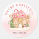 Merry Christmas Pink Gingerbread House Round Sticker is perfect for gift tags, envelope seals, and favour bags. Edit Text by clicking Personalise. Matching items in our store Cava party design.