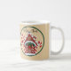 Adorable gingerbread house with candy canes on a cream background with a green border is sure to strike a nostalgic note in every heart