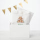Festive Christmas party favour bag featuring a gingerbread house. Perfect for a Gingerbread House Decorating Party. The words can be changed to suit your own details or requirements