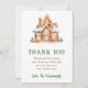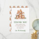 Festive Christmas party thank you card featuring a gingerbread house. Perfect for a Gingerbread House Decorating Party. The words can be changed to suit your own details or requirements