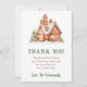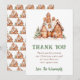 Festive Christmas party thank you card featuring a gingerbread house. Perfect for a Gingerbread House Decorating Party. The words can be changed to suit your own details or requirements