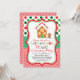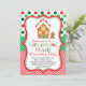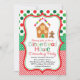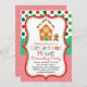 Our festive and fun Gingerbread House Decorating Party Invitation features red and green polka dots and stripes and an adorable candy decorated Gingerbread house and gingerbread man. Perfect for any gingerbread house decorating Christmas party!