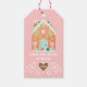 These gingerbread house gift tag is perfect for addressing gifts this year. The front says "From our house to yours." You can personalise with the year. Colours include, brown, pink, aqua and white.