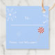Some cute blue square Holiday gift tags with a whimsical gingerbread house .