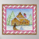 This poster is from my original watercolor painting. A cute snowman sits in front of a gingerbread house. Hearts, gumdrops and chocolate chips decorate the home's facade. A candy bar chimney completes the design.