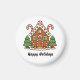 Holiday Gingerbread house magnet. Fun unique design with christmas trees and candy canes. Great magnet for your fridge or gifting as a stocking stuffer. Happy Holiday greeting can be customized.