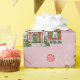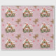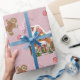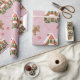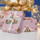 A sweet gingerbread house, gingerbread man cookies and peppermint candy are set on a pretty pink background with subtle lines of poinsettias to make this cute, nostalgic Christmas wrapping paper.