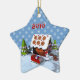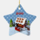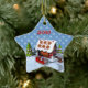 This design features an illustrated Gingerbread House with candies and cookies, a snowman, snow tipped trees and a sleigh full of gifts.
