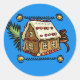 Cute illustration of a gingerbread house on a blue background.   Stickers have hundreds of uses!  Seal an envelope, a Christmas card, a holiday letter.  Decorate a gift.  Create your own wrapping paper. Use stickers instead of tape for gift wrapping.  Give a page of stickers as a stocking stuffer.  Kids love them!  Customise them, too, by adding text or changing background colours.  You can even create your own stickers right here at Sticker Mad!  Just go to the front page and select the blank sticker, then upload your own photo or artwork.  Add text, add colour, and voila! You've made your own custom sticker!