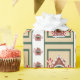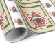 Adorable gingerbread house with candy canes on a cream background with a green border is sure to strike a nostalgic note in every heart