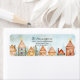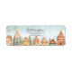 A sweet row of gingerbread houses looks so cute on these Christmas return address labels. They are from a vintage watercolor design. Be sure to edit the example names and address entries with ones of your own.