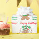 This festive Christmas gift wrap features a cute cartoon image in green, red, and brown of a gingerbread man holding a sign overhead that spells out JOY. The text above the gingerbread man says "Happy Holidays" in bright Christmas red, and your own customisation appears in bright holiday green. All the text is easy to customise. Fun and festive for your gift packages, especially for kids. Be sure to see the matching gift tag labels in our store.